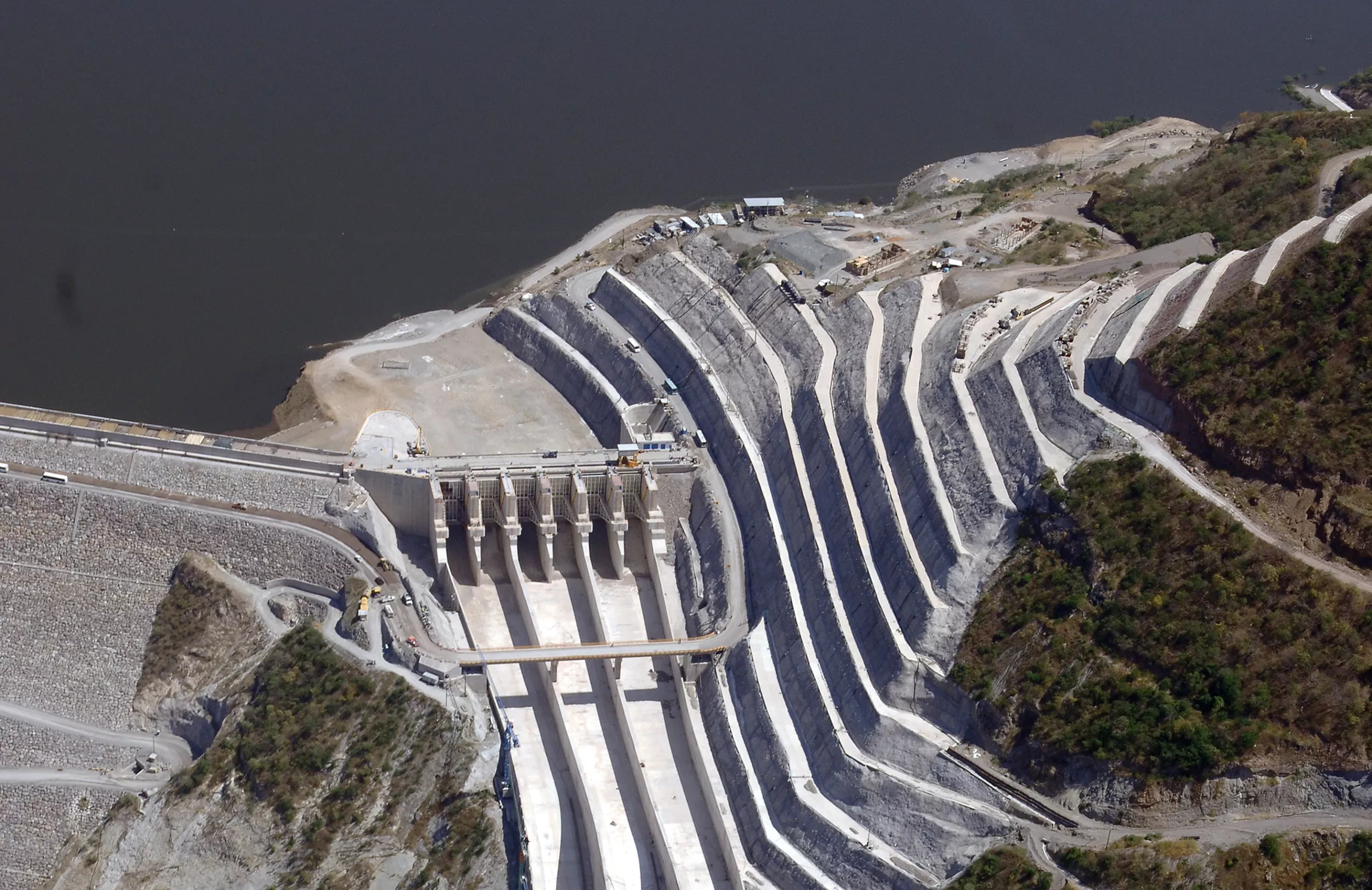 Es la segunda presa de concreto más alta del mundo, con una altura de 210 metros.